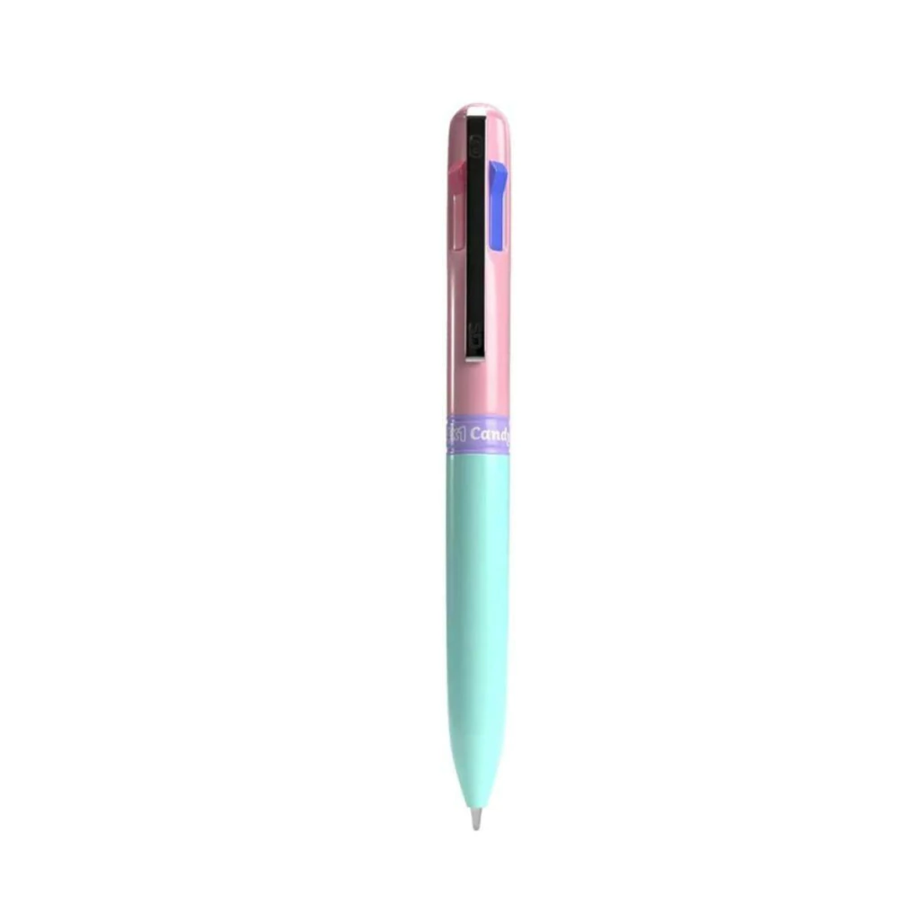 A Caneta Esferográfica Cis 4x1 Candy é uma caneta multifuncional que possui quatro cores diferentes de tinta em um único corpo. As cores geralmente são tons pastéis, seguindo a temática "candy", que remete a cores mais suaves e delicadas.