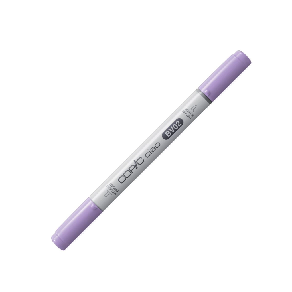 O Copic Ciao possui 180 cores com ênfase em tons fáceis de aplicar em camadas e misturar, ideal para iniciantes. As tampas das extremidades são seguras para crianças e os códigos de cores podem ser encontrados no corpo da caneta.