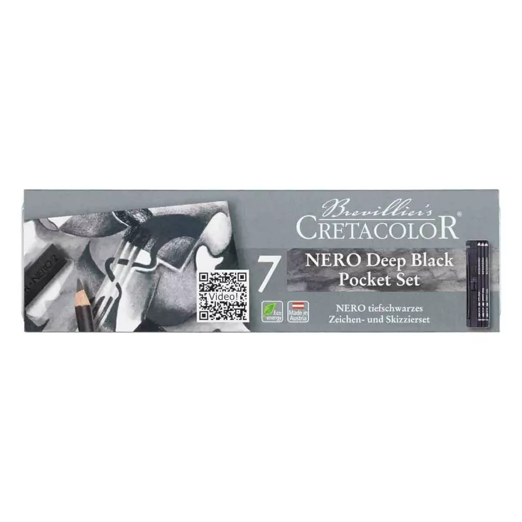 Conteúdo: Lápis de artista (Nero extra macio, médio, duro), Nero Stick (grosso) 7 x 14 mm, Nero Sticks 7 x 7 mm, Carvão natural Ø 4 mm.