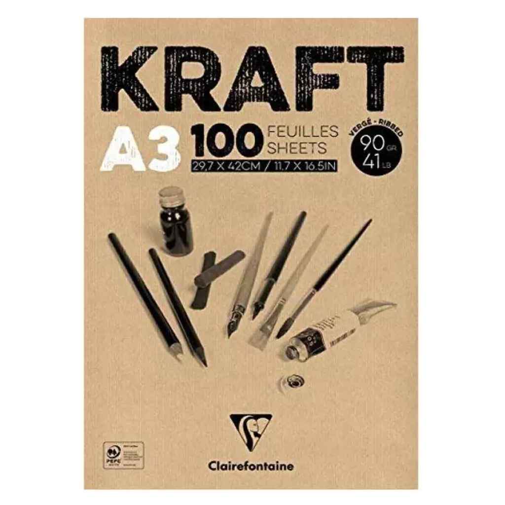 O bloco de papel Kraft Clairefontaine é composto por um papel especialmente desenvolvido para desenho artístico. Produzido de papel vergê 90g de alta qualidade na cor Craft e textura com linhas horizontais para melhor fixação do grafite ou carvão.