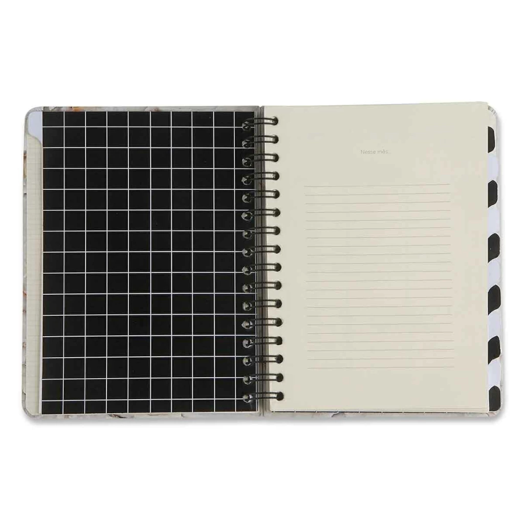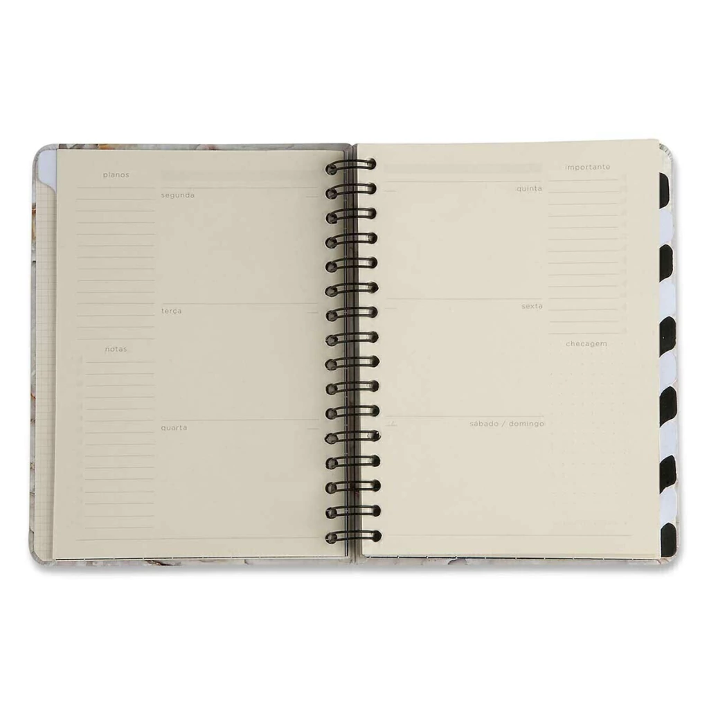 O Planner espiral, tem capa dura, folha de adesivo funcionais, bolsa pasta, folha com calendários 2021 e 2022. Também possui 12 divisórias customizáveis, visão mensal e semanal e página para você organizar seus compromissos do dia a dia, em casa, no trabalho ou na faculdade.