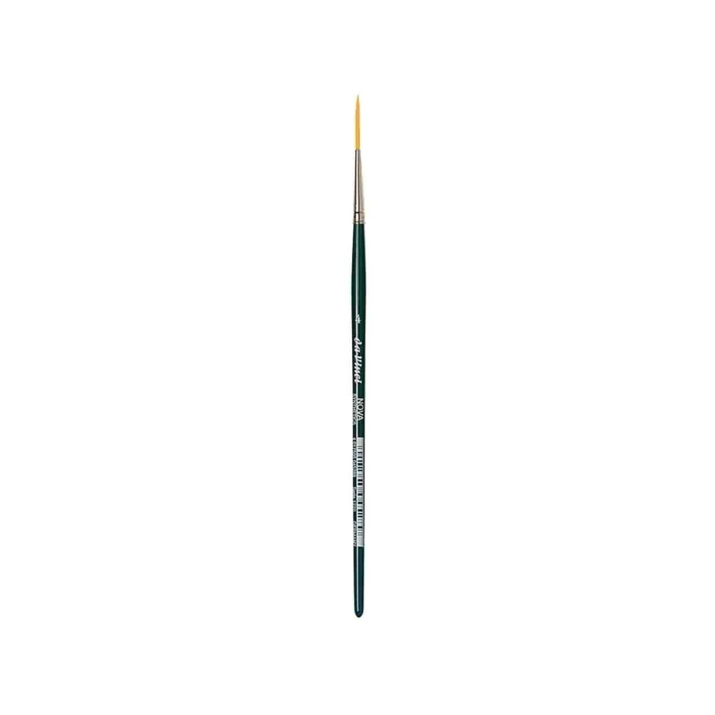 Pincel para detalhe, comprimento médio e formato pontiagudo, feito com as melhores fibras sintéticas douradas. Fabricado com ferrolho prateado e cabo curto verde brilhante.